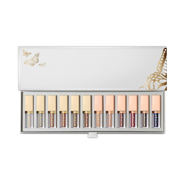 An exclusive liquid eyeshadow vault featuring 12 full-size shades Glitter & Glow and Shimmer & Glow.