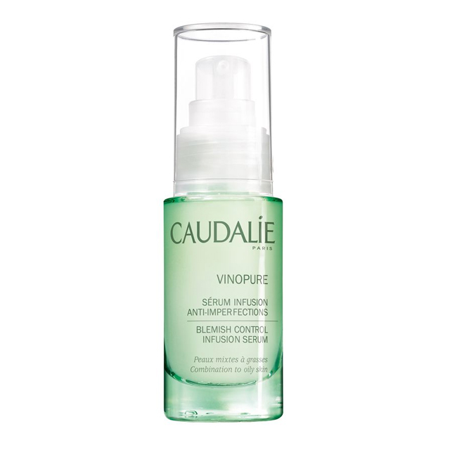 Formulated with the highest concentration of natural salicylic acid, this ultra-light yet potent gel serum purifies pores, zaps blemishes, and purges excess oil, blackheads, and bacteria. Caudalie’s natural salicylic acid (a BHA, or beta hydroxy acid) is clean, powerful, and oil soluble, which allows it to penetrate pores, targeting the most stubborn pimples caused by bacteria and dead skin. While the salicylic acid works hard to flush out excess oil and clarify clogged pores, rosewater works to your enhance glow and hydrate skin. The formula is further enriched with antioxidant grape seed polyphenols to protect the skin and prevent the oil inside your pores from oxidizing, or turning black, which is essentially a blackhead. A complex of noncomedogenic essential oils provides antiseptic to calm the skin and keep it clear, leaving it smooth and soft. Powerful yet soothing, this serum is safe for sensitive skin and is recommended for combination to oily skin, as well as those with hormonal breakouts.